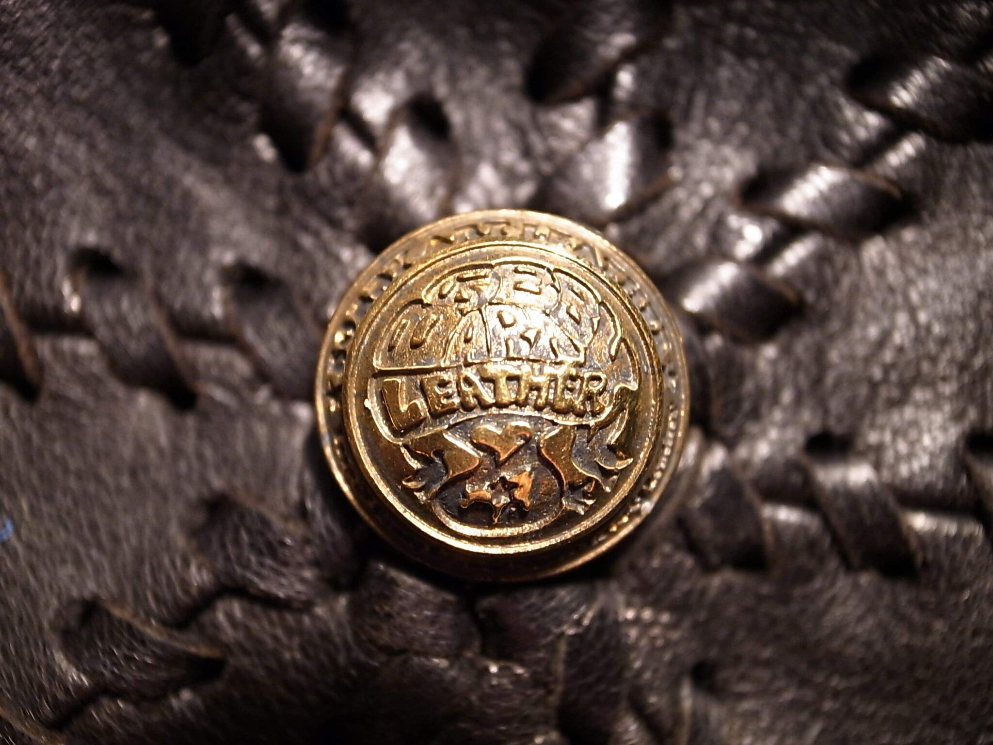 トップのコンチョボタンはオリジナルロゴをかたどった真鍮製(2025.12~)